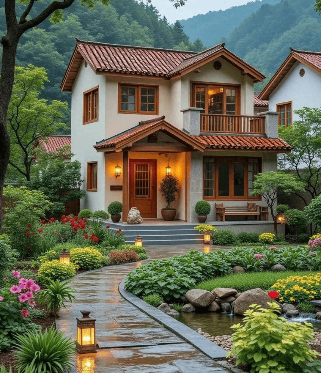 刚才我们讲到了“山管人丁水管财”,门前有流动的水源,可以带动家里的财运。而屋后有山,就代表着有靠山,生活更稳当。
