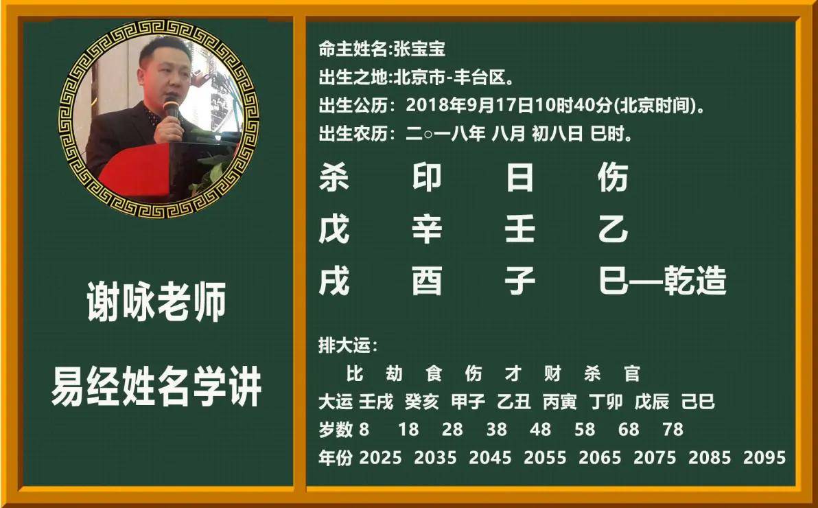 其实朋友们完全可以放心的,谢咏老师起名字绝对是值得信奈和非常靠谱的,谢咏老师一生致力于易经和姓名文化的研究运用,采取命理之核心五行喜用神结合易经起名,勘称姓名学的精髓和正统,谢咏老师对八字命理的深度研究和喜用神精髓的掌握,哪怕是某些收费高达三五万的大师们,都是难以企及的高度所在!