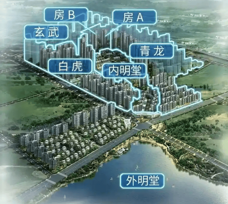 在风水经典作品《阳宅十书》中便写到了最理想的住宅状态——左有河流,谓之青龙;右有道路,谓之白虎;前有池塘,称为朱雀;后有山丘,称为玄武。